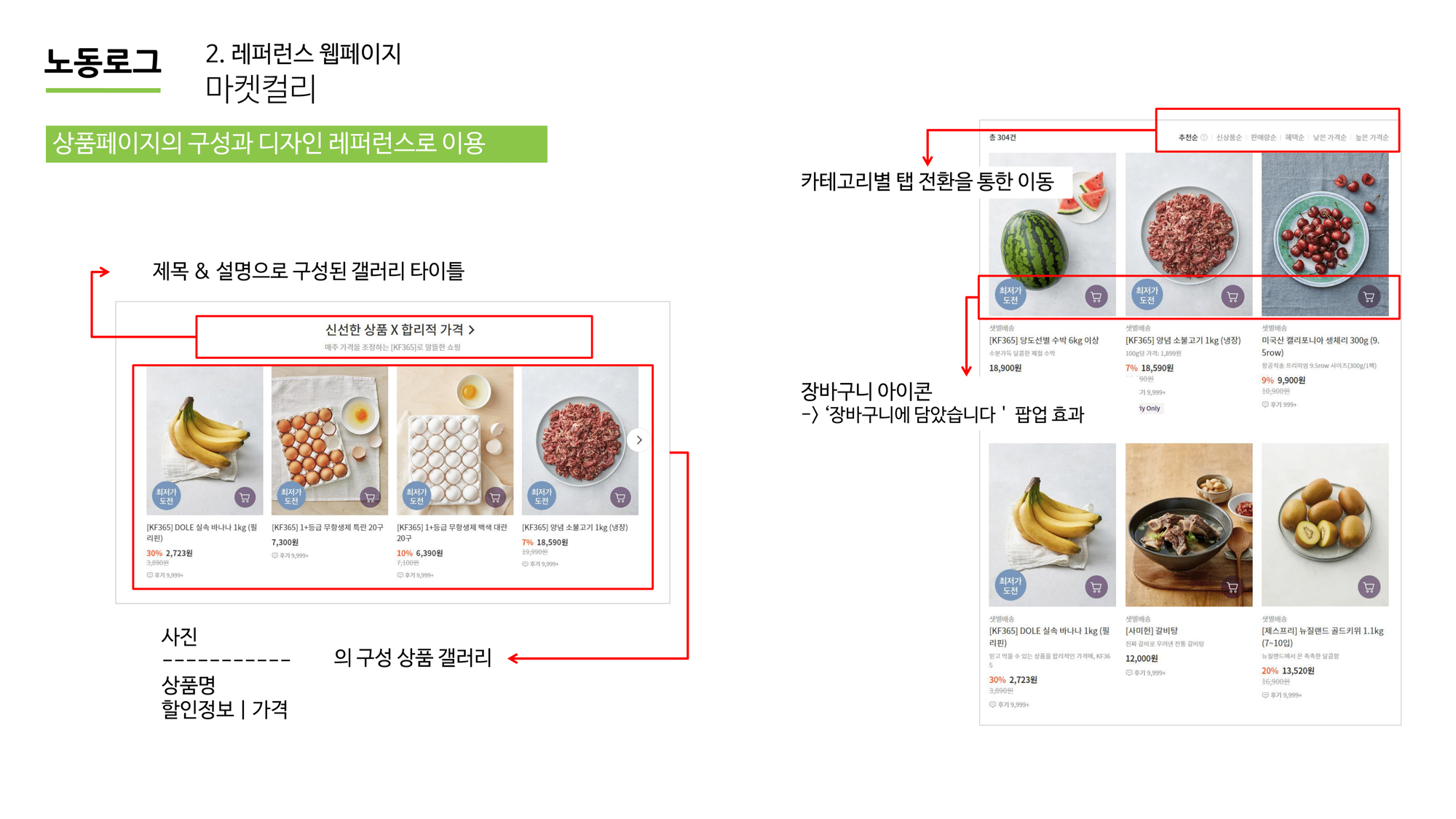래퍼런스로는 정육각, 빙그레, 마켓컬리 페이지를 주로 참고하였다.