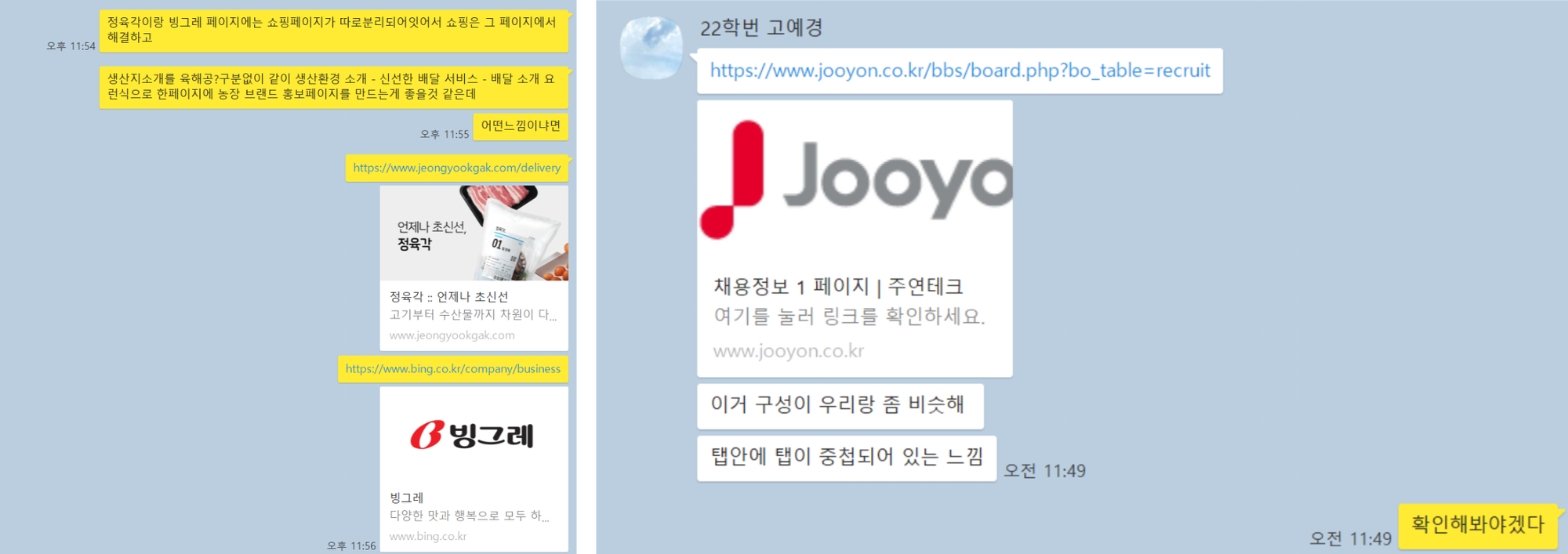 정육각과 빙그레의 경우 전체 메뉴 구성과 페이지 분리 및 전환 방법 - 탭 전환의 주 래퍼런스로 이용되었다.