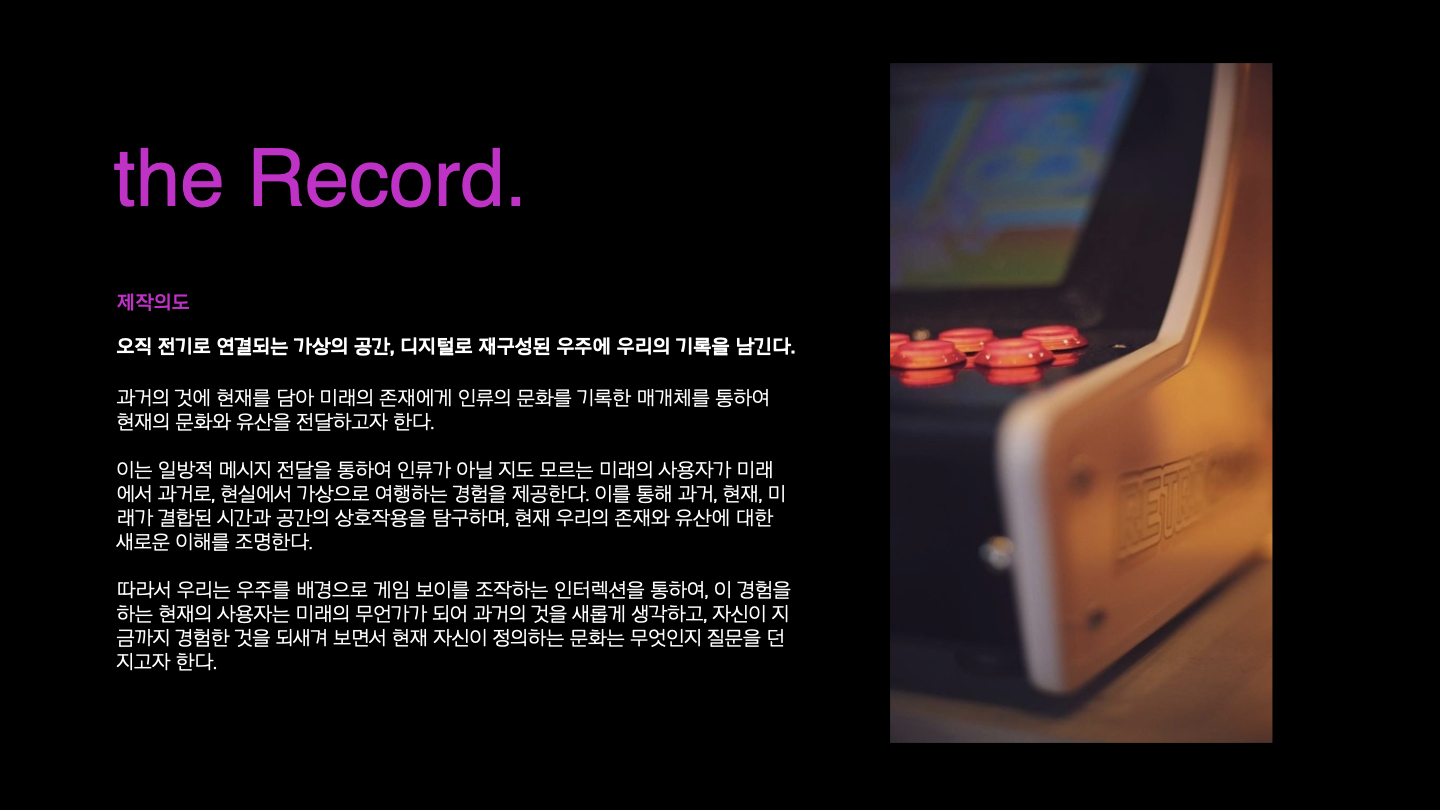 주제: 오직 전기로 연결되는 가상의 공간, 디지털로 재구성된 우주에 남기는 기록