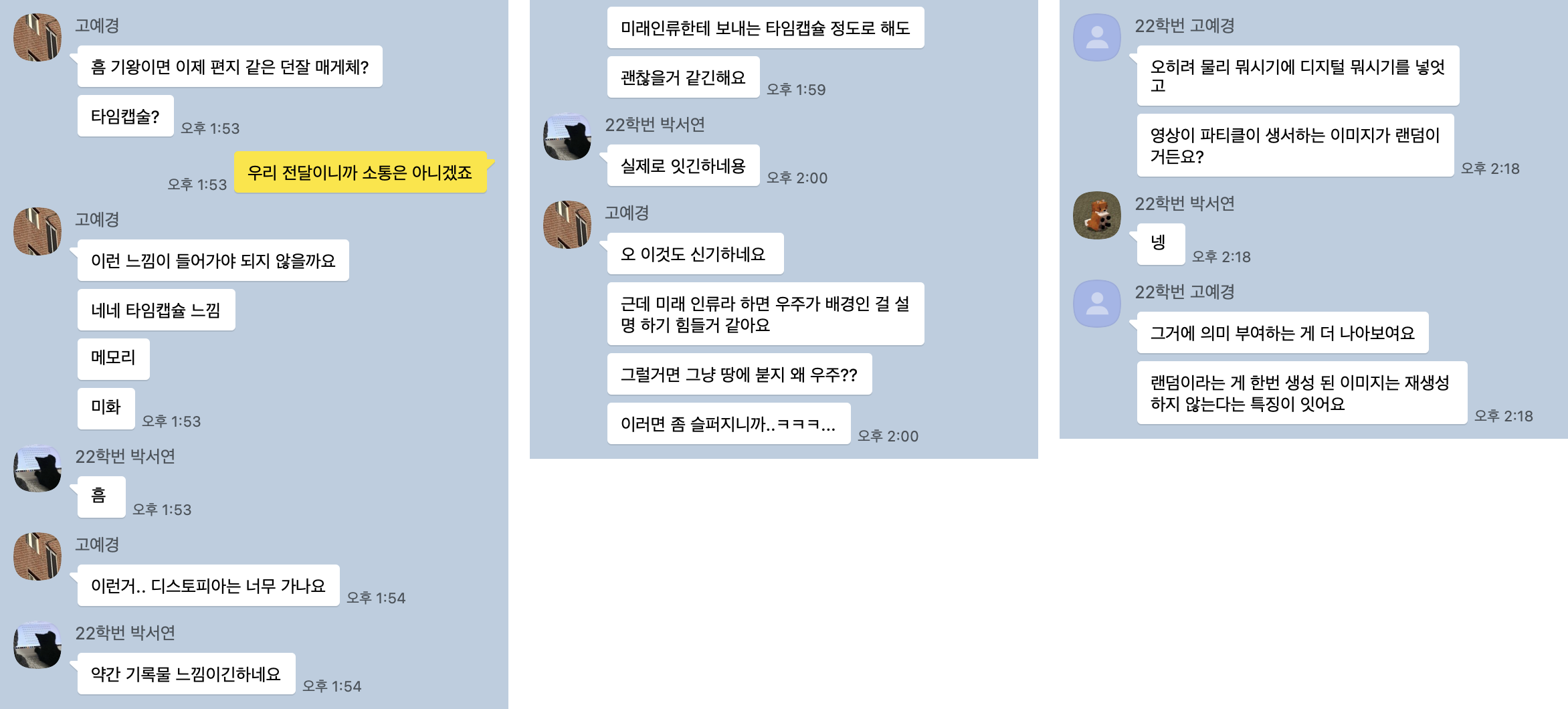 회의 시간 외에도 즉석에서 협의할 내용이 있을 때는 채팅을 적극적으로 활용했다.