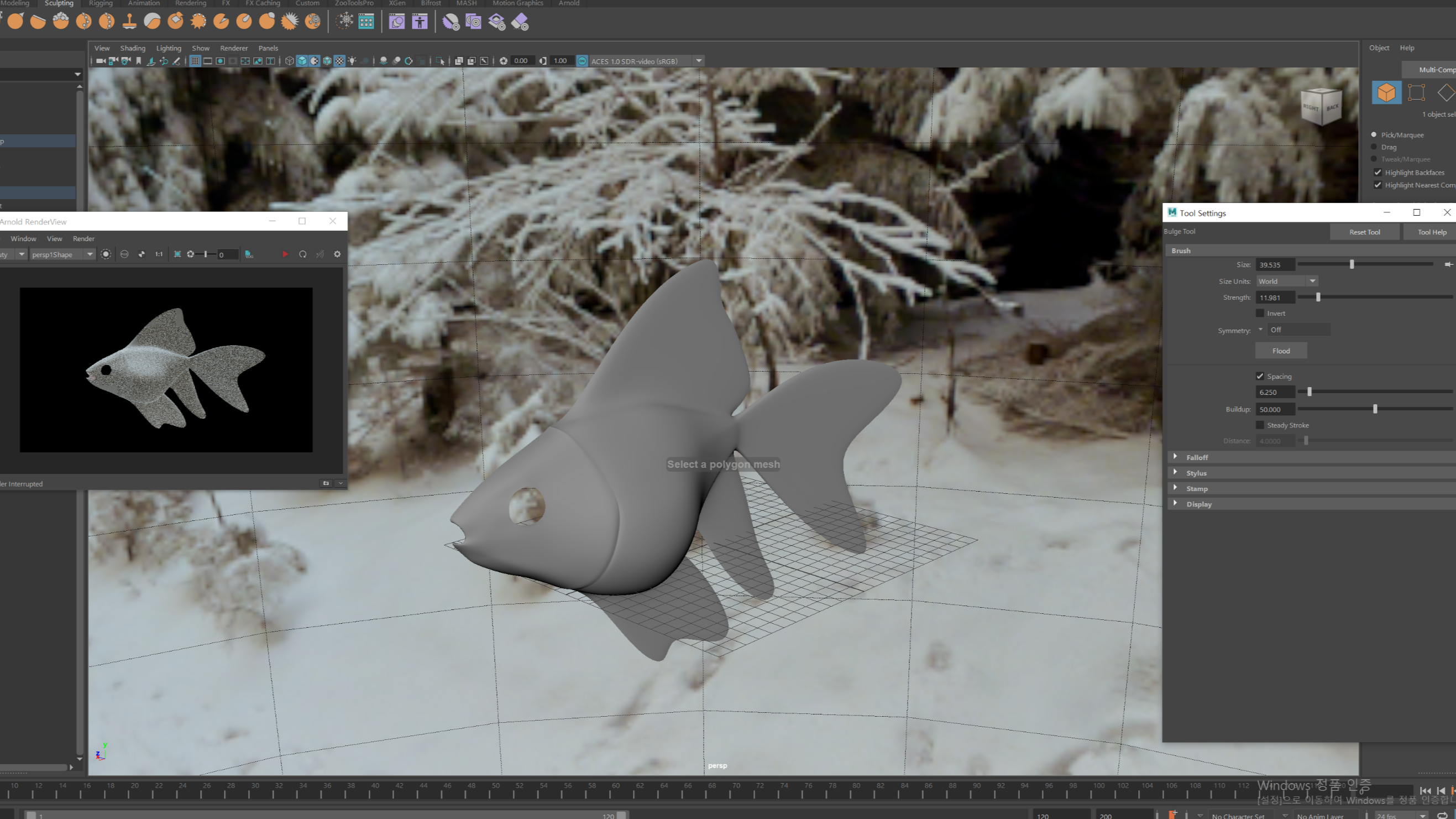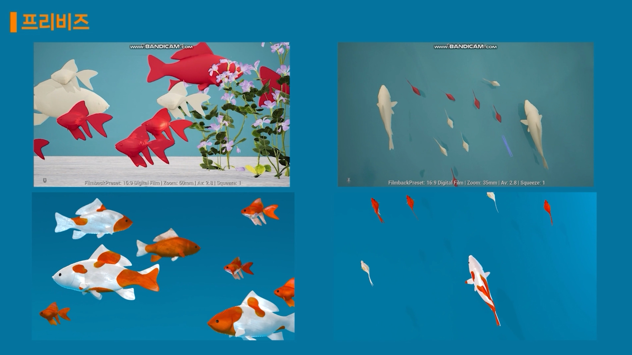 모델링과 마찬가지로 자료가 많이 남지 않은것 같다 ^^... 잉어의 경우 사이즈가 큰 편이라 디테일이 잘 보여 리깅도 지느러미까지 세세하게 만들려고 했었고, 금붕어의 경우 전체 몸통에 wave을 주는 심을 하나 심고 사이클을 돌려서 꾸물거리는 움직임을 완성했다.